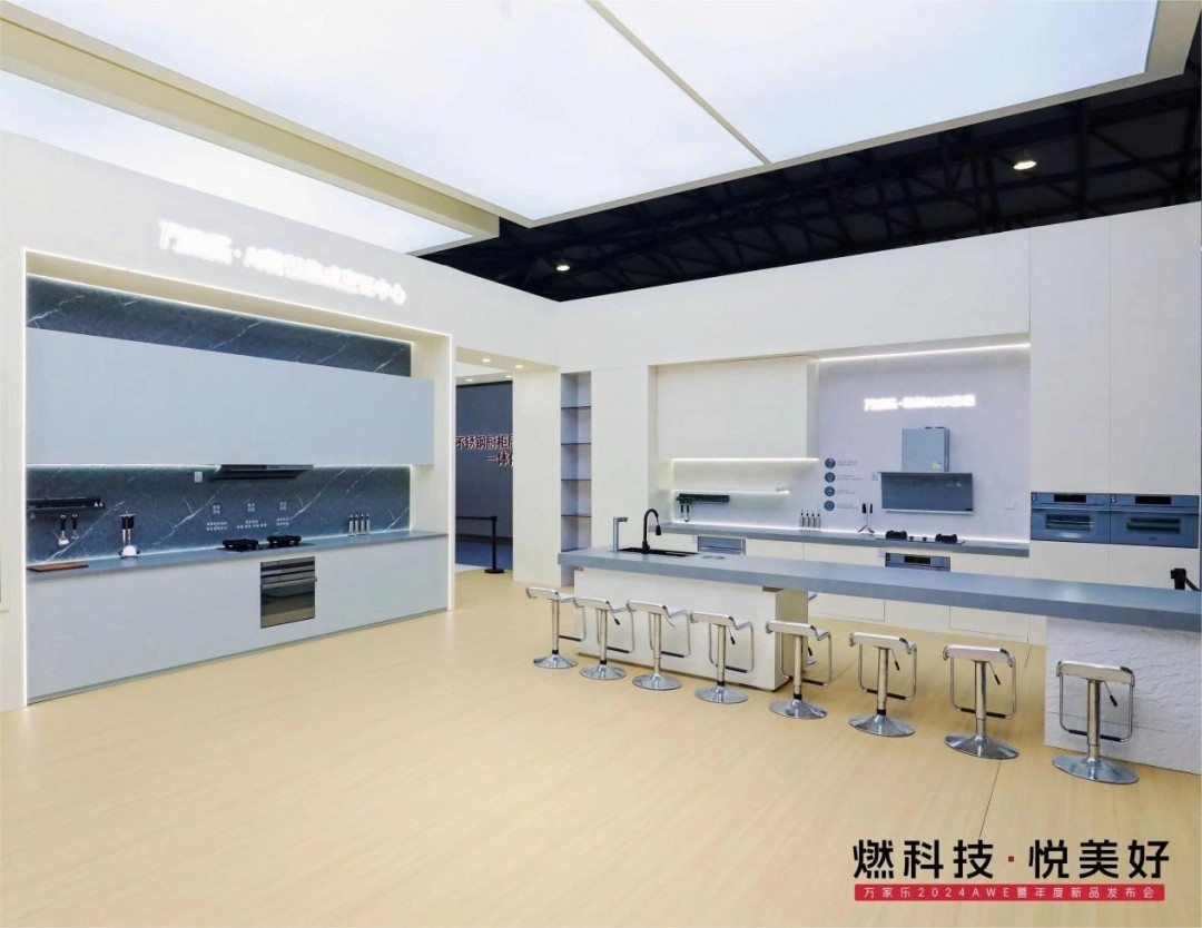 同样,2024AWE上,粤企同样展示了AI赋能力。例如,万家乐在2024WAE上发布了AI智慧集成烹饪中心。据悉,AI智慧集成烹饪中心集油烟机、烹饪制冷机、灶具、蒸箱、烤箱等烹饪功能于一体,搭载智慧烹饪、智净系统、舒适系统三大集成系统,在烟烹智联技术、PID温度精控技术、风幕隔烟屏净烟技术、等离子净化技术、超泡化油洗技术、清凉制冷技术等多项厨房科技的加持下,实现多种厨房电器高效协同工作、提高烹饪效率,让烹饪变得更加便捷、健康。