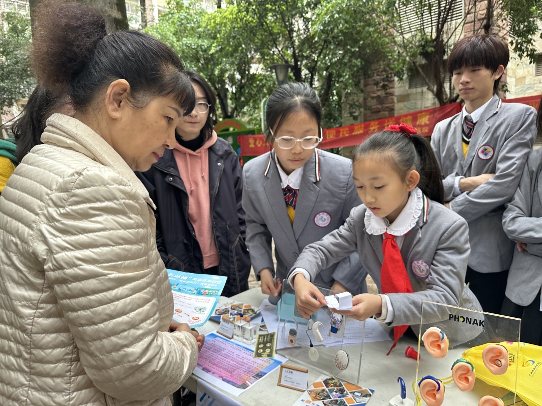 为更好推动听力残疾预防与康复的普及教育,广州市听障学生随班就读资源中心(以下简称中心)在“爱耳日”当月组织了系列活动:面向普校随读听障学生的免费听力检测及科技体验公益活动、爱耳日大队活动、助听器养护知识科普、进社区为居民科普爱耳小知识等。