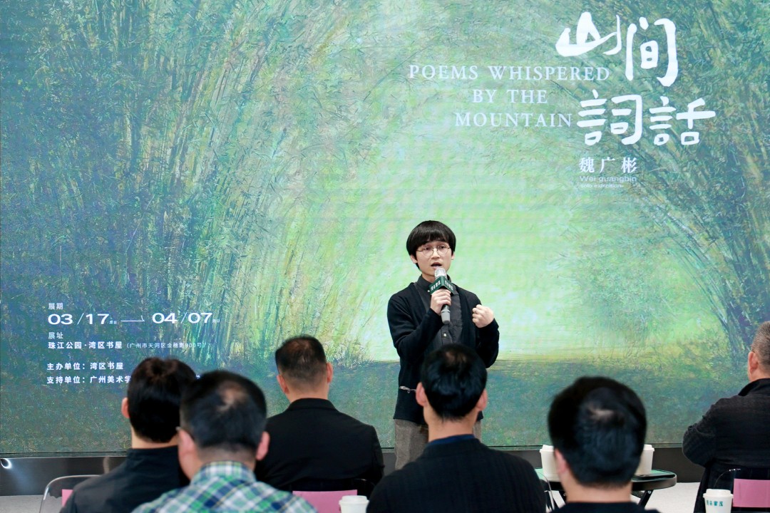 3月17日下午,“山间词话”魏广彬作品展在珠江公园湾区书屋开展,共展出青年艺术家魏广彬个人创作50余件。广州美术学院院长范勃,著名艺术评论家皮道坚,广州美术学院附中校长胡宇、副校长张伟,广州美术学院艺术与人文学院院长胡斌,广州美术学院教务处副处长林锋等嘉宾出席了开幕活动。