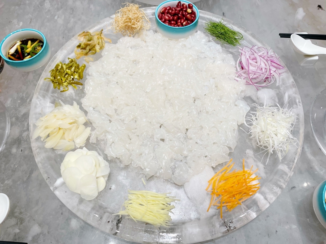 顺德美食是如何“开美颜”的?顺德水晶文化美食馆率先创意将水晶盘作为顺德鱼生的容器,在镜头下直接颜值拉满,乘着洁白无瑕的鱼生用碗也是水晶打造。不仅如此,用于作为鱼生食材的鲩鱼养殖的吊水池也是水晶材质。