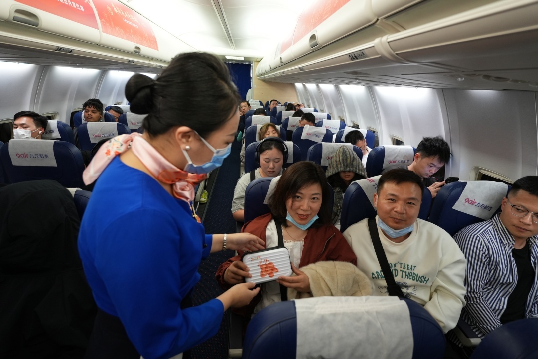 “各位乘客,欢迎乘坐本次九元航空的‘红棉航班’!木棉花是广州的市花,一般在三月盛开,其鲜艳的红色和坚韧的品质……”3月18日晚,从上海浦东飞往广州白云的九元航空AQ1006“红棉航班”上,伴随着机上广播,一场特别的空中红棉之旅就此展开。
