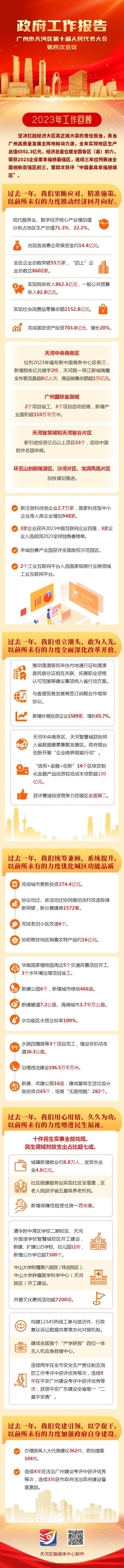 报告指出,天河区以前所未有的力度推动经济回升向好,经济发展量质齐升,平台建设加速推进,创新动能持续提升。以前所未有的力度全面深化改革开放,粤港澳大湾区建设走深走实,重点领域改革稳步推进。以前所未有的力度优化城区功能品质,“百千万工程”系统推进,绿美天河生态格局加快构建,城区综合承载能力持续增强。以前所未有的力度增进民生福祉,社会保障基础不断夯实,教育医疗文化事业提质发展,平安天河建设扎实有力。