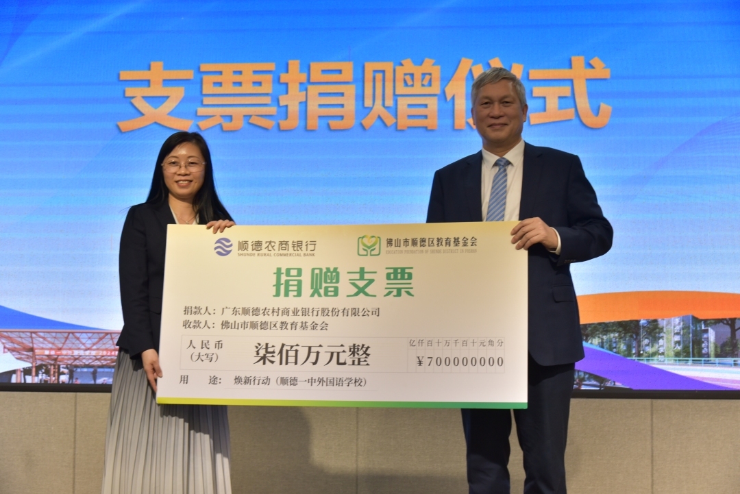 日前,“顺德农商银行支持一中外国语学校焕新项目捐赠仪式”在佛山市顺德区第一中学外国语学校顺利举行。据悉,本次仪式是顺德农商银行响应顺德区老旧学校“焕新行动”工程的号召,向一中外国语学校捐赠了700万元,用于支持学校的“焕新项目”。