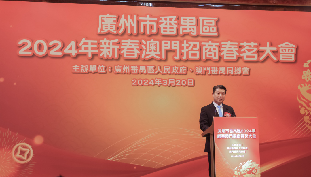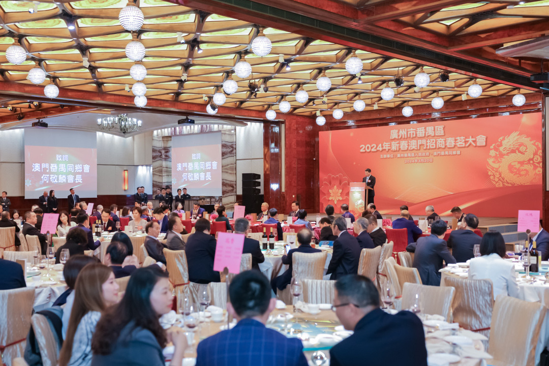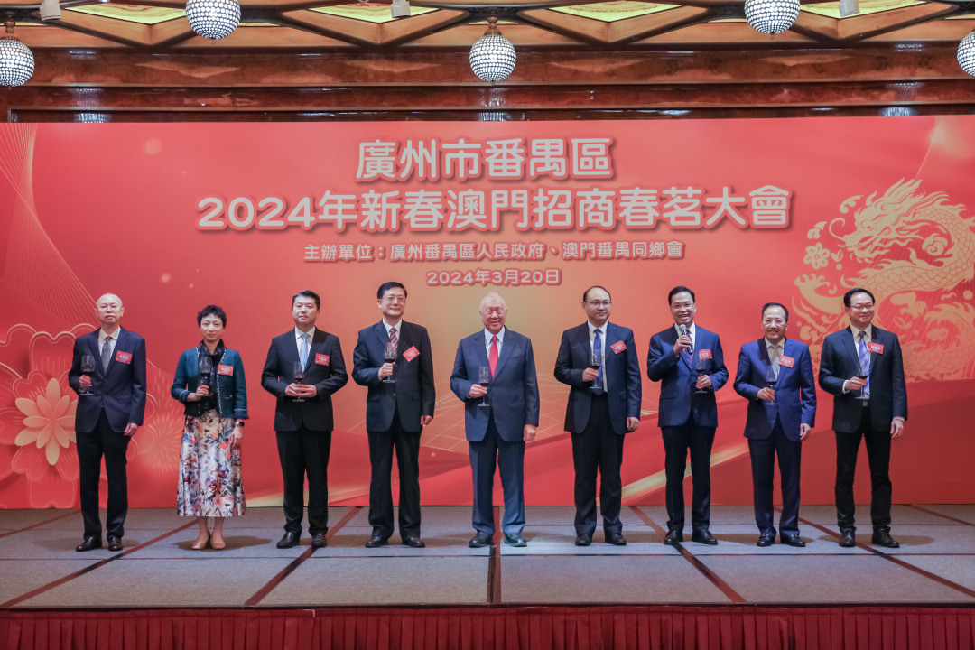3月20日,广州市番禺区在澳门举办2024年新春澳门招商春茗大会,与澳门政界、商界知名人士,番禺籍广州市荣誉市民,旅澳番禺乡亲畅叙乡情,共商未来。