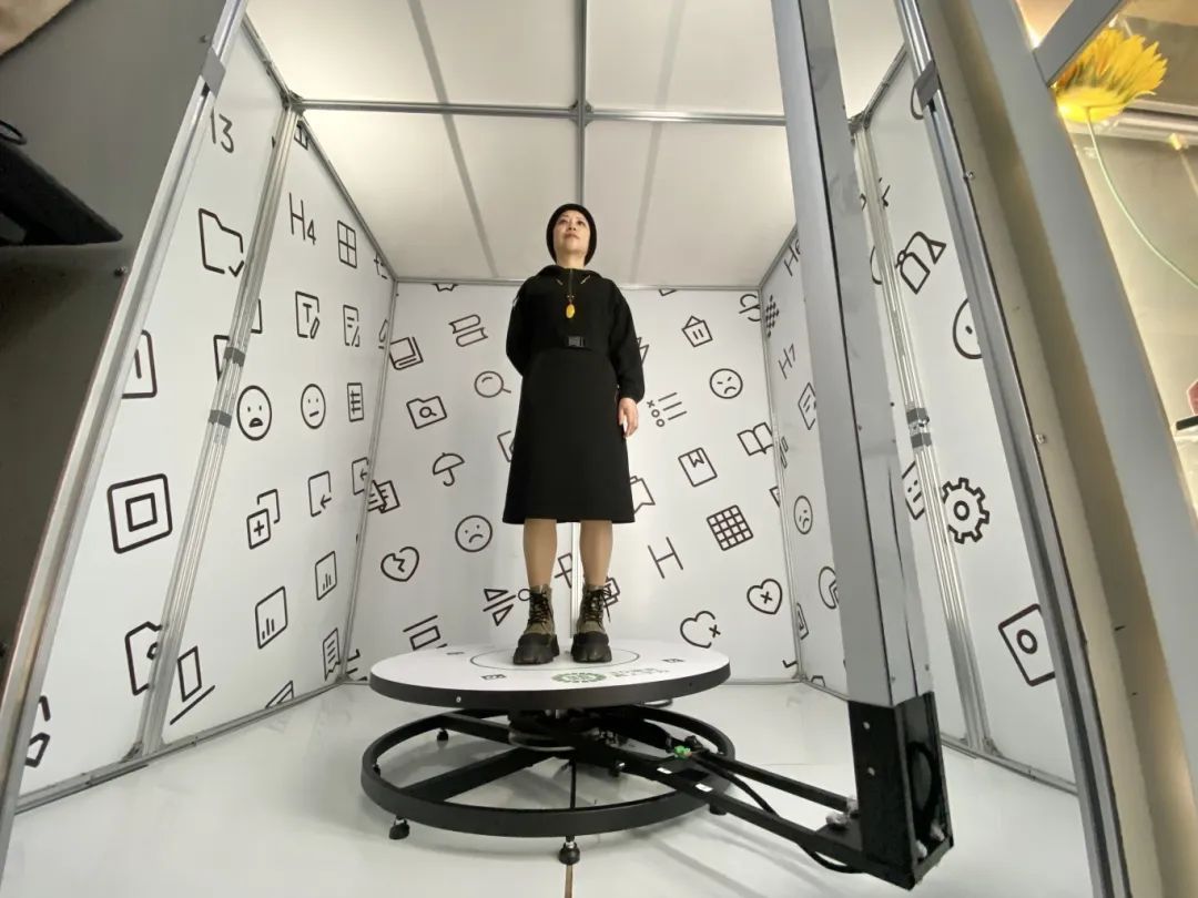 店里使用相机矩阵进行数据采集,360度布置90台高速照相机进行全方位拍摄,最大程度还原受拍摄者的真实样貌。