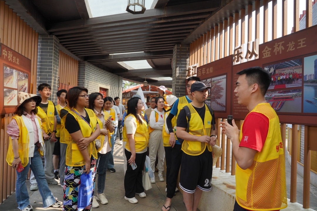 “这是龙舟湖,湖里摆放着12人和22人国际标准龙舟,湖水与外面的沙良河连通,由此可以看到我们龙舟队员训练的水环境是很不错的……”跟着顺德龙舟俱乐部副领队马晴亮的步伐,20多位市民开启了龙舟文化之旅。在雕塑“腾龙”前,马晴亮介绍了雕塑的由来和背后的意义,一段由龙舟赛事延伸出的“敢为天下先”的震撼久久地萦绕在市民心头。畅游在乐从龙舟训练基地里,他们感受到佛山龙舟文化的魅力与厚重。“通过(工作人员的)介绍,我对顺德龙舟文化有了深刻的了解。”市民李康告诉记者,顺德龙舟真的很厉害。