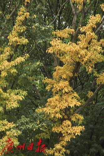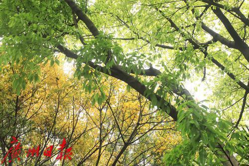 同是黄葛树,绿叶和黄叶相对照,让人感到惊奇。