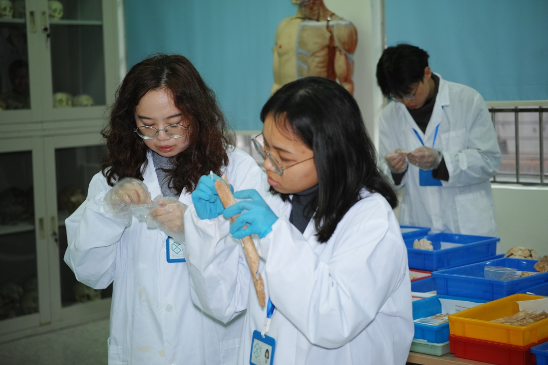 李法军的学生在实验室里拼合近年发现的一批古人骨材料