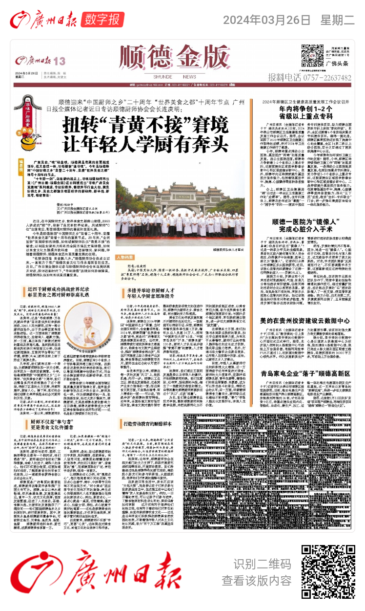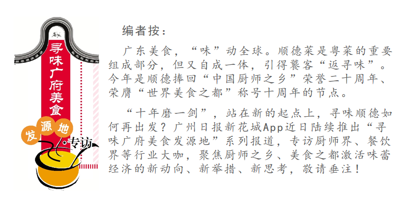 今年是顺德捧回“中国厨师之乡”荣誉二十周年、荣膺“世界美食之都”荣誉十周年的重要节点。20年来,“全民皆厨”氛围浓郁的顺德,如何破解厨师队伍“青黄不接”的窘境;以制造业硬实力闻名的全国百强区之首顺德,如何以美食文化为媒提升软环境……这些新情况、新问题,伴随着顺德厨师、顺德美食迈向高质量发展的征程。