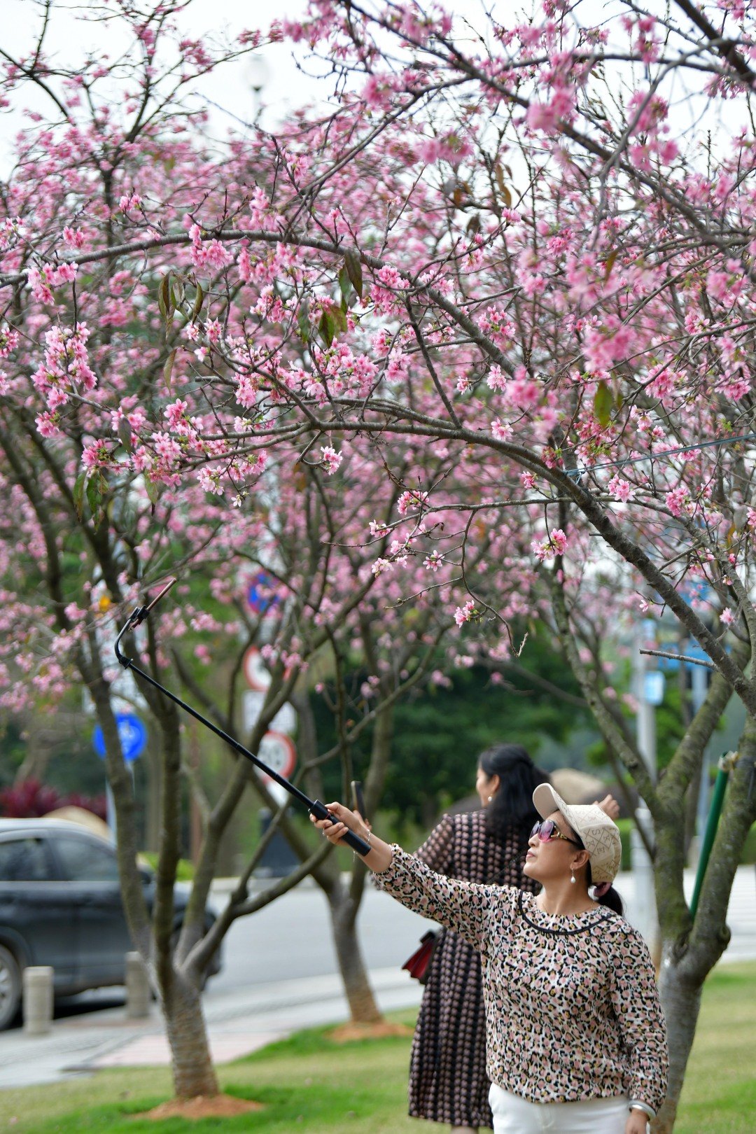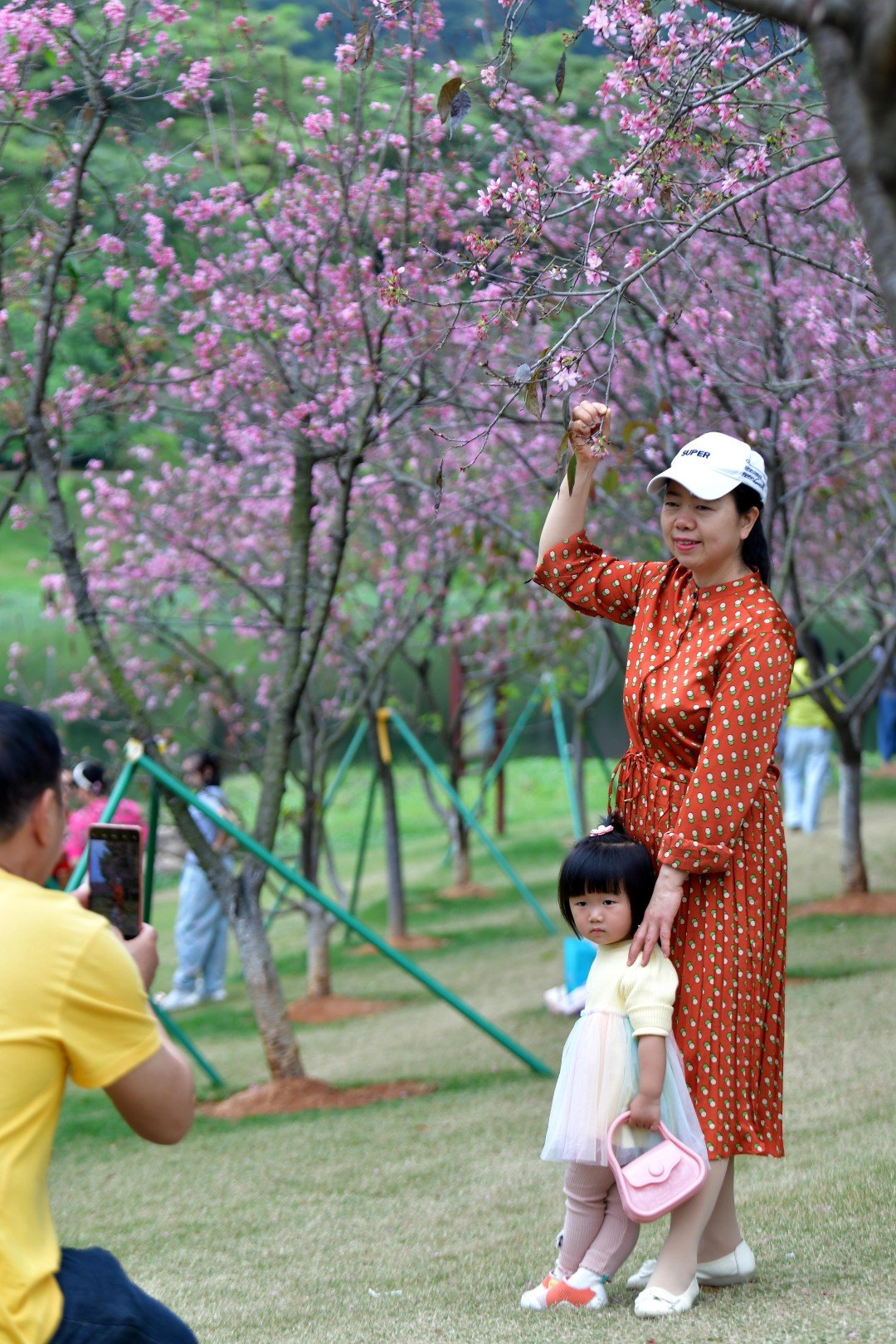 据创业公园黄埔区创业公园园长陈梨英介绍,环湖种植的樱花是创业公园的一大特色。园内约种植了620株樱花,品种包括中国红和广州樱。随着广州樱的盛花期到来,创业公园的客流量也显著增加。据统计,近期公园客流量比平时增加了七成。