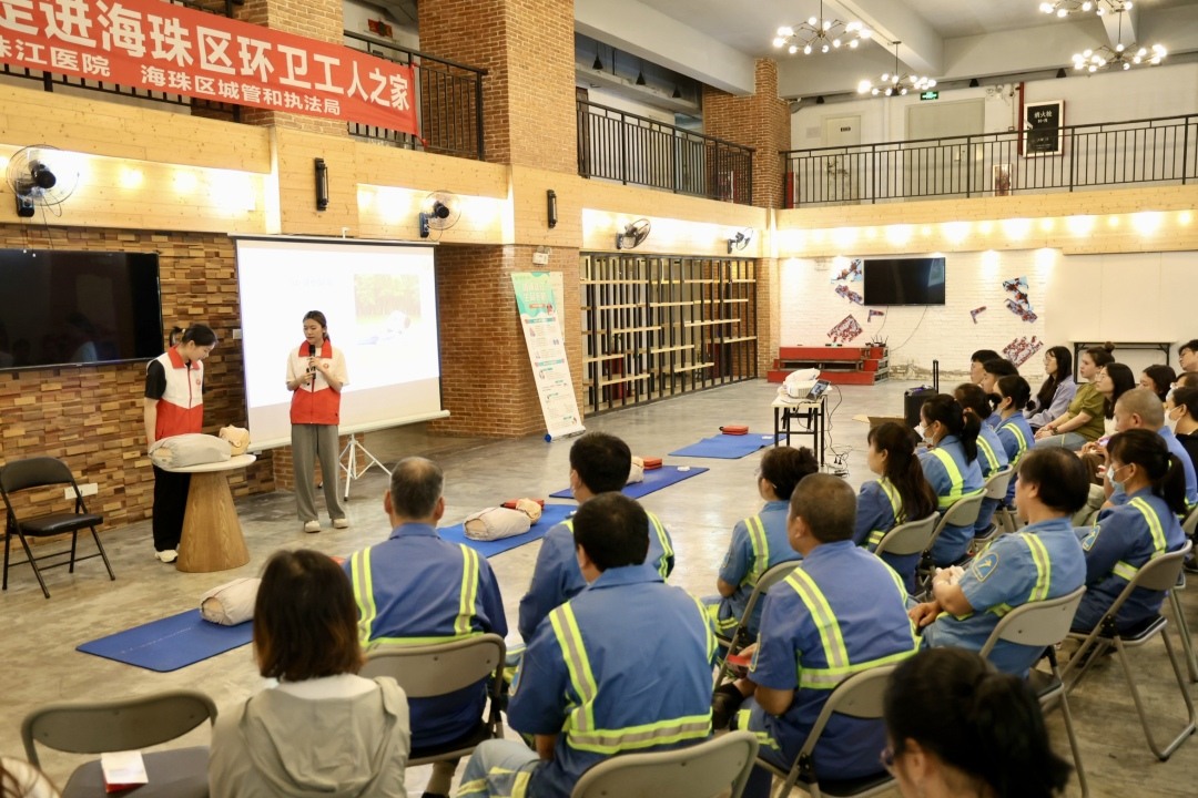 马路上发生紧急情况,谁有可能第一时间紧急救援?“马路天使”环卫工人可能是其中之一。为进一步提升环卫工人紧急救护能力,3月27日,南方医科大学珠江医院“全民来急救”志愿服务队携手海珠区城管与执法局走进区环卫工人之家开展急救培训。