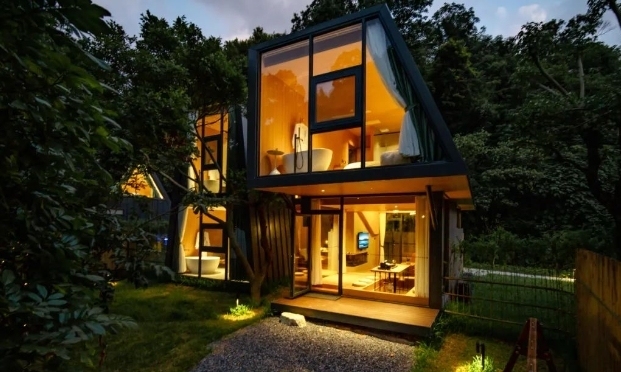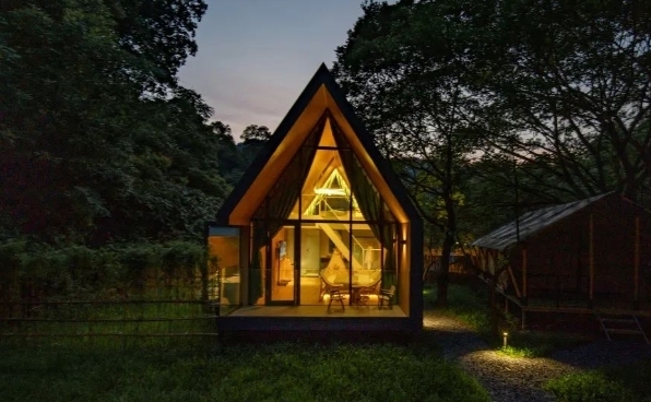 民宿树屋采用三角几何设计,顶天耸立,仿佛欲从一片绿林中呼之欲出。淳朴的原木结构,搭配现代化整墙玻璃,从清晨到日暮,与自然风光零距离相拥,亲子树屋分上下两层,阁楼是孩子们梦想的隐秘空间,每个熊孩子亲临,无一不是上蹿下跳至筋疲力尽。
