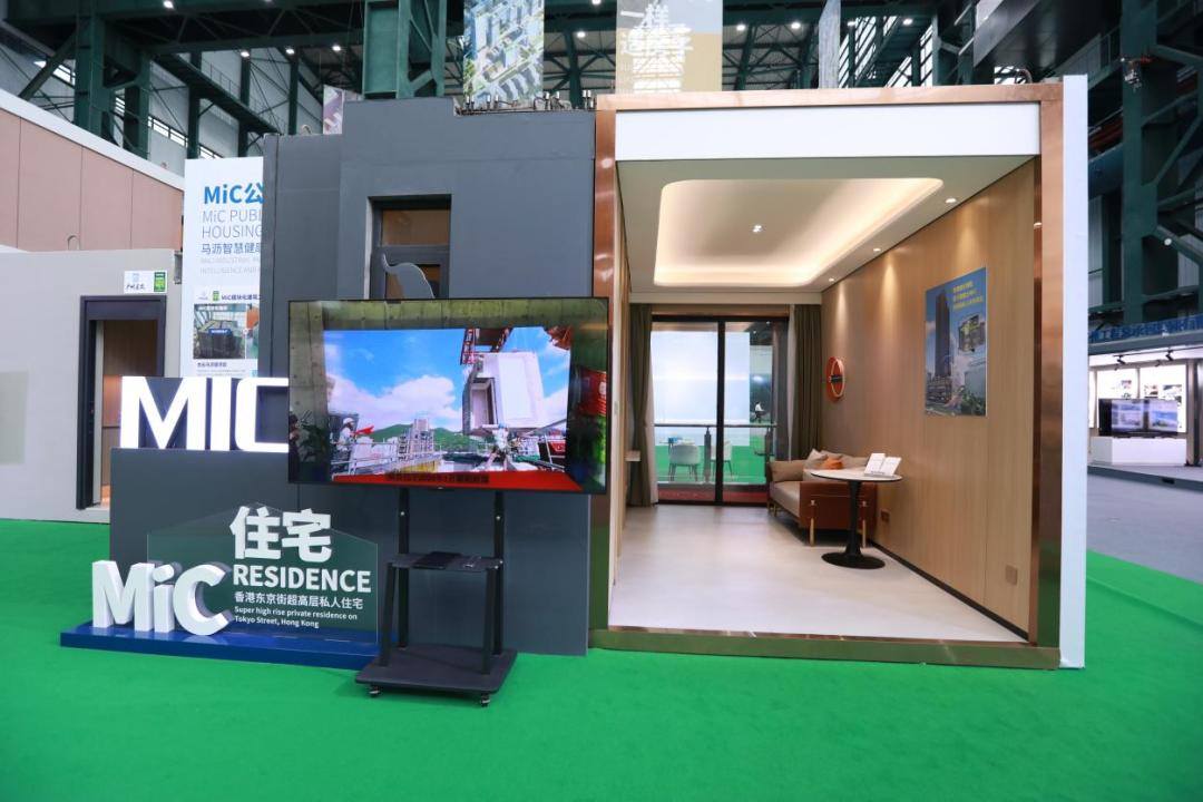 由两个模块拼装而成的一户一厅样板间,是香港首栋混凝土MiC超高层私人住宅——东京街项目的样品。广州建筑集团在2021年承接了香港首栋混凝土MiC超高层私人住宅——东京街项目模块单元的生产任务,并于2023年11月完成生产任务。