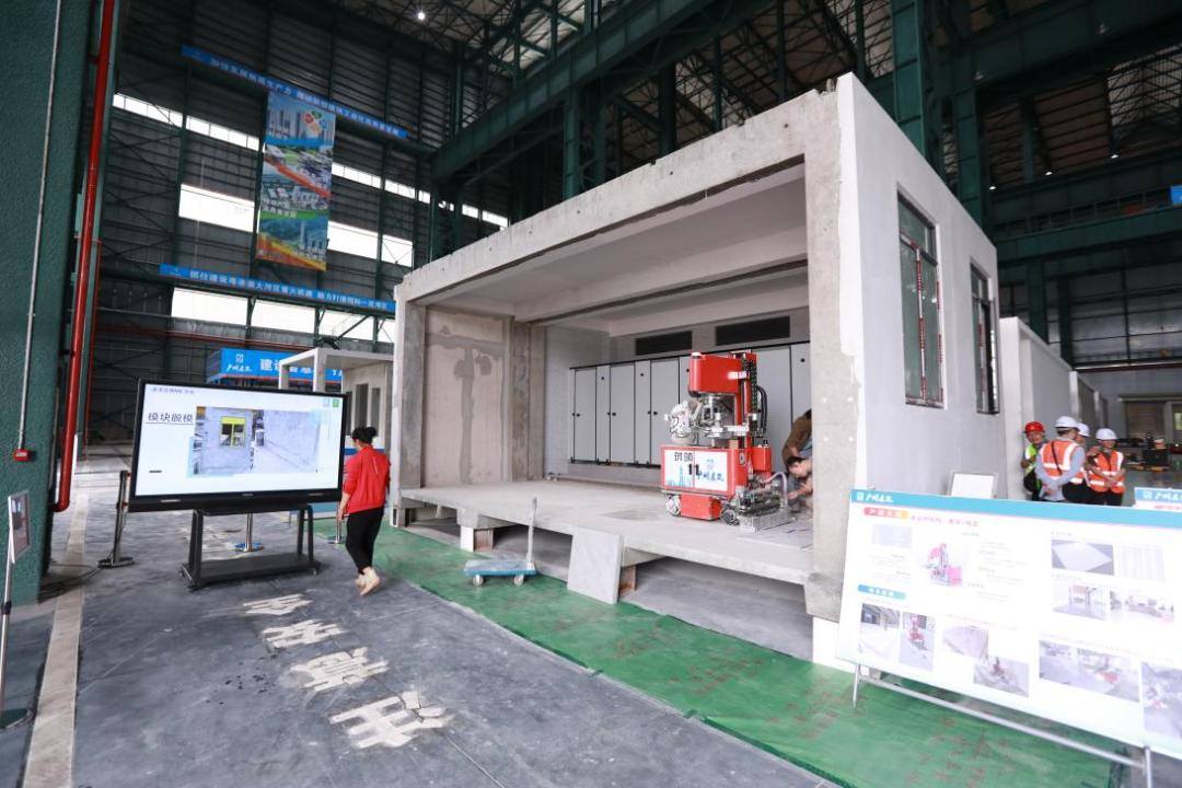 建筑模块内部集成多种构件,外部需考量模块之间的严密安装。作为精密的工业品,模块的生产过程也吸引了与会嘉宾的极大兴趣。