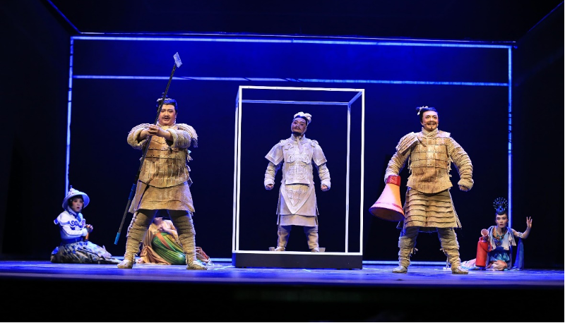 《我们是秦俑》通过梦境般的舞台、绚丽的灯光,把观众带到神秘而悠远的历史时空中,通过引人入胜的情节,它弘扬的不仅仅是中华文明的瑰丽,更是通过故事,引发孩子们对“爱·快乐·永恒”这一主题的感受和思考。