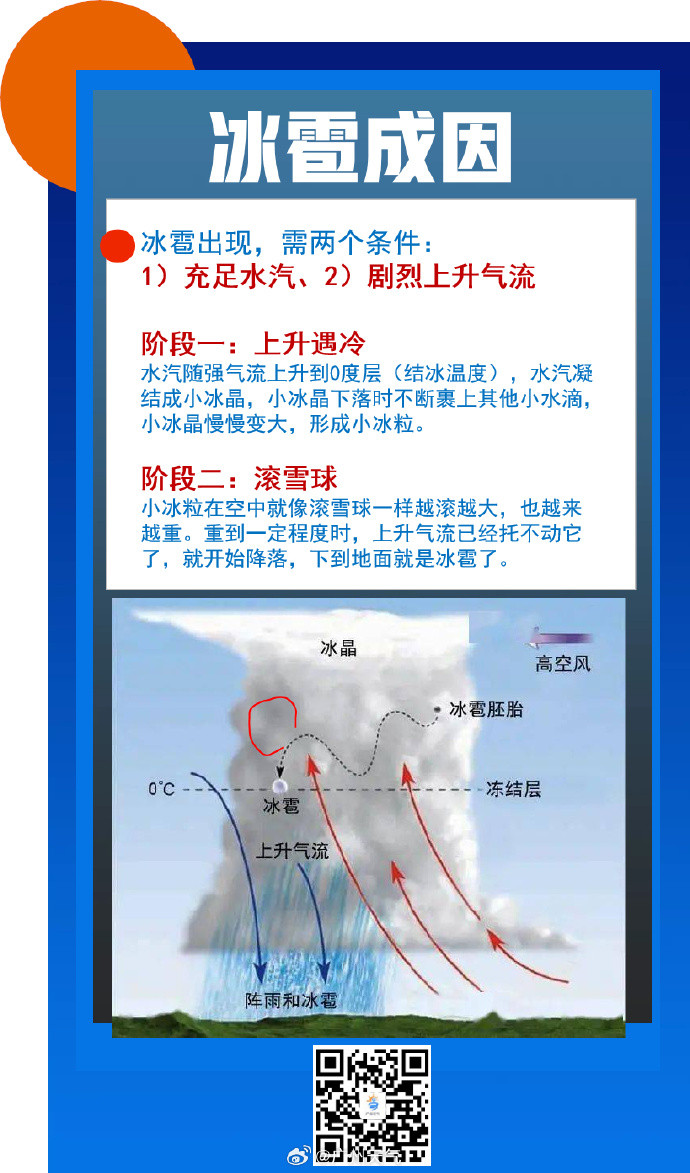 据@广州天气解析,30日夜间到31日白天,来自海洋的暖湿气流迅速增强,携带了大量的水汽,使得广州近地面的空气变得非常湿润。而31日白天阳光照射,加热了近地面的湿润空气,使其像烧开水一样形成强的上升气流。在这个过程中,水汽随强气流上升到0度层(结冰温度),水汽就凝结成小冰晶,也就是冰雹核,并通过滚雪球效应形成冰雹。