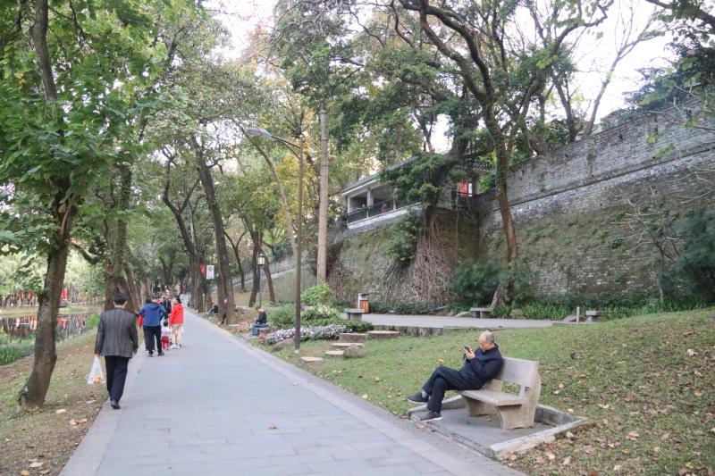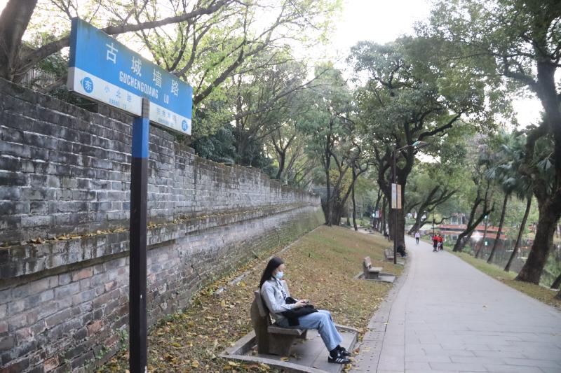 近日,记者在越秀公园看到,园内的明城墙东起小北门,西至大北门。在越秀公园东门,古城墙依山蜿蜒。东秀湖旁,有一条名为“古城墙路”的道路,游客一边在此漫步,一边欣赏碧波荡漾的湖景。在越秀公园南越路段的古城墙旁,运动爱好者沿着道路慢跑,游客坐在一旁欣赏这段城墙,品味历史和文化的积淀。越秀公园内设置了不少文保介绍牌,介绍古城墙的始建年代、高度、外形等情况,游客可以通过扫描指示牌上的二维码了解古城墙的相关信息。
