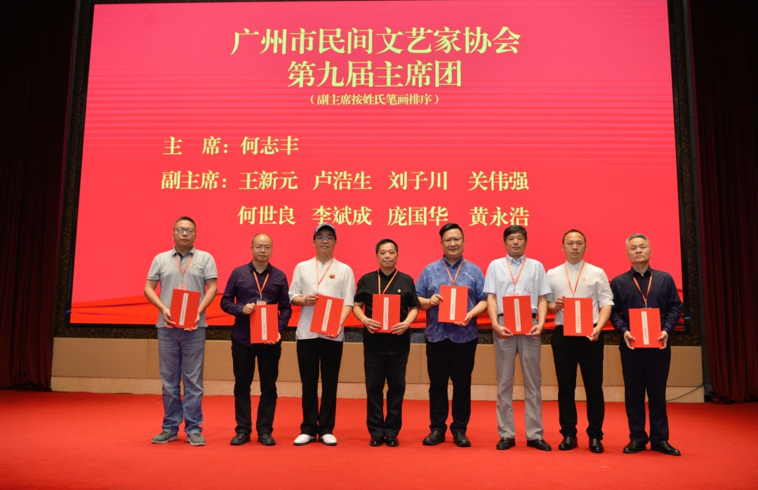 3月31日下午,广州市民间文艺家协会第九次会员代表大会举行,选举产生了新一届主席团和理事会,何志丰当选主席,王新元、卢浩生、刘子川、关伟强、何世良、李斌成、庞国华、黄永浩当选副主席(按姓氏笔画排序)。