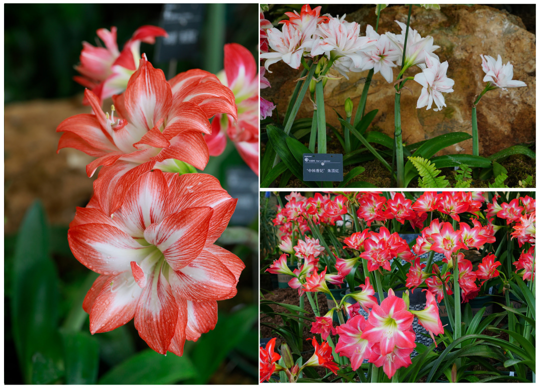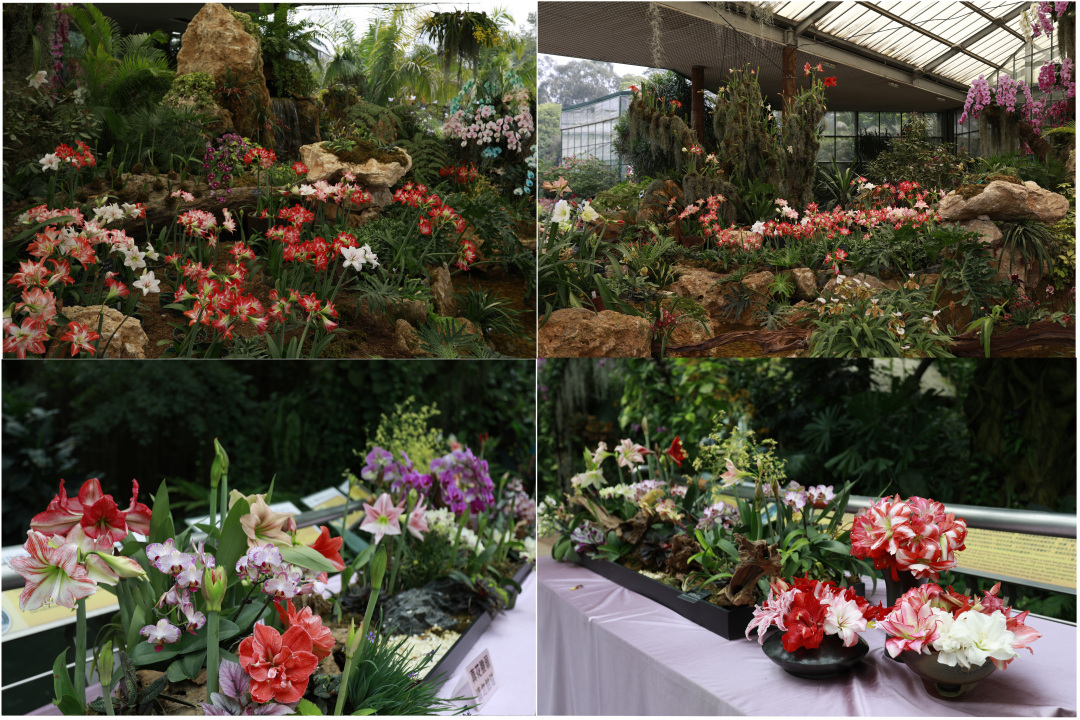 近日,华南国家植物园一年一度的朱顶红花展在和美春光里如约而至。记者了解到,本次朱顶红花花展为期半月,和往年一样在雨林温室布景展出,共展出朱顶红原生种、原生种后代、华南国家植物园自主培育的朱顶红新品种及园内保育栽培的朱顶红品种共约200个。