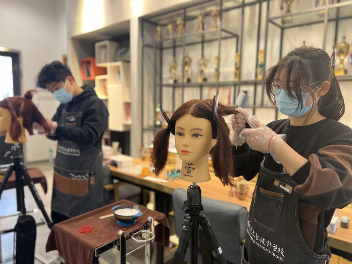 “女孩子确实不多。像我之前带的2018级美发与形象设计专业的一个班,30个学生,6个女孩子,目前还在从事美发行业的只有2个。”杭州市创意艺术学校美发专业教师、第45届世界技能大赛美发项目比赛冠军石丹说。