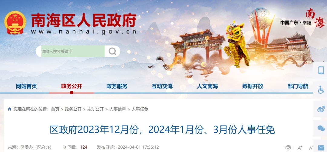 昨日,佛山市南海区人民政府官网发布最新人事任免通知。