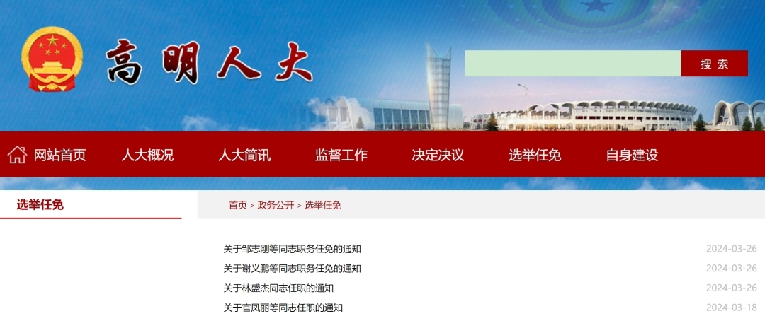 近日,佛山市高明人大官网发布最新人事任免通知。