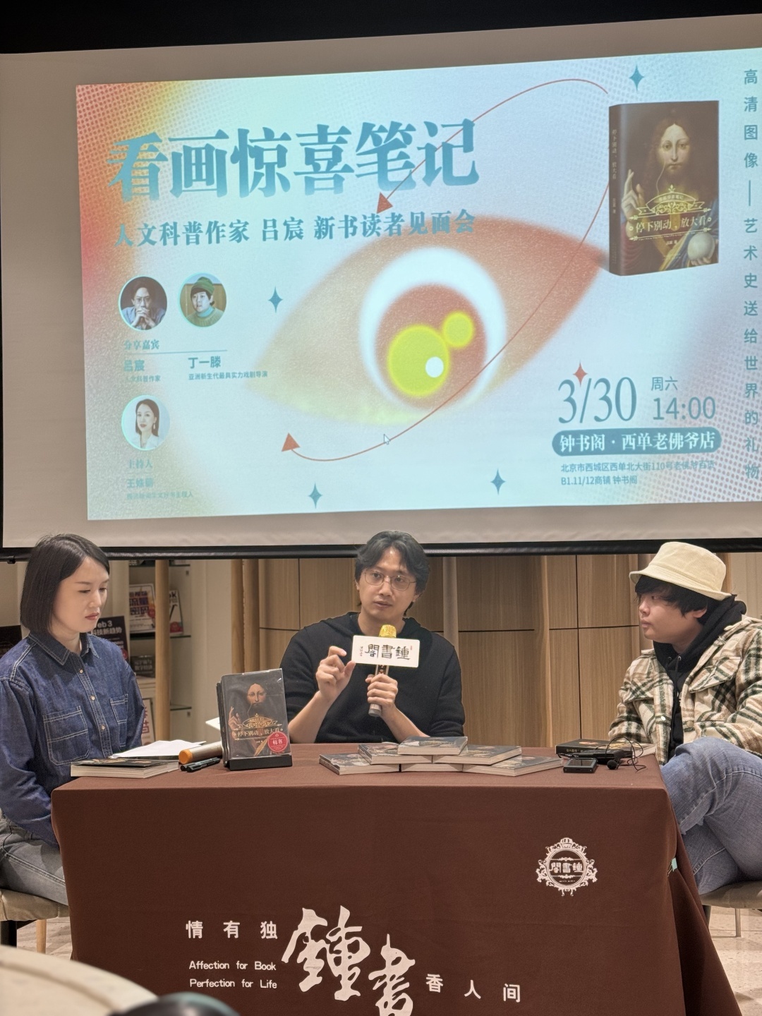 90后人文科普作家吕宸以艺术史为切口,用新潮诙谐的语言,从大众感兴趣的视角带大家了解艺术,短视频累计获赞高达4500多万,深受欢迎。近日,吕宸推出艺术科普新作《停下别动,放大看》。“高清图像是这个时代送给艺术史的礼物——吕宸《停下别动,放大看》新书读者见面会”在京举行。吕宸与青年戏剧导演丁一滕一起,从艺术与戏剧的跨界视角进行了一次有趣且生动的“学术碰撞”。