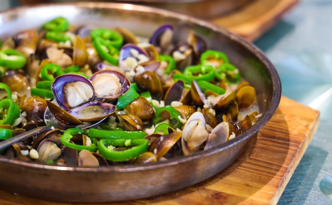 身为莲洲人的叶卫东从小就爱吃黄沙蚬,自然知道该怎么对待这份天然的鲜甜。他说,吃黄沙蚬最讲究原汁原味,只需简简单单的蒜蓉清蒸、盐油清蒸已足够。吐净泥沙的黄沙蚬平铺在铝盘中,加入海鲜汤、油盐、蒜蓉蒸煮,几分钟后,盘中“卜卜”开壳声不绝,白嫩的蚬肉露出真容,食客们也打趣称之为“卜卜蚬”。待热气散开,一筷一口一啜,鲜甜汁水和嫩滑肉感在舌尖绽开,美味妙不可言。