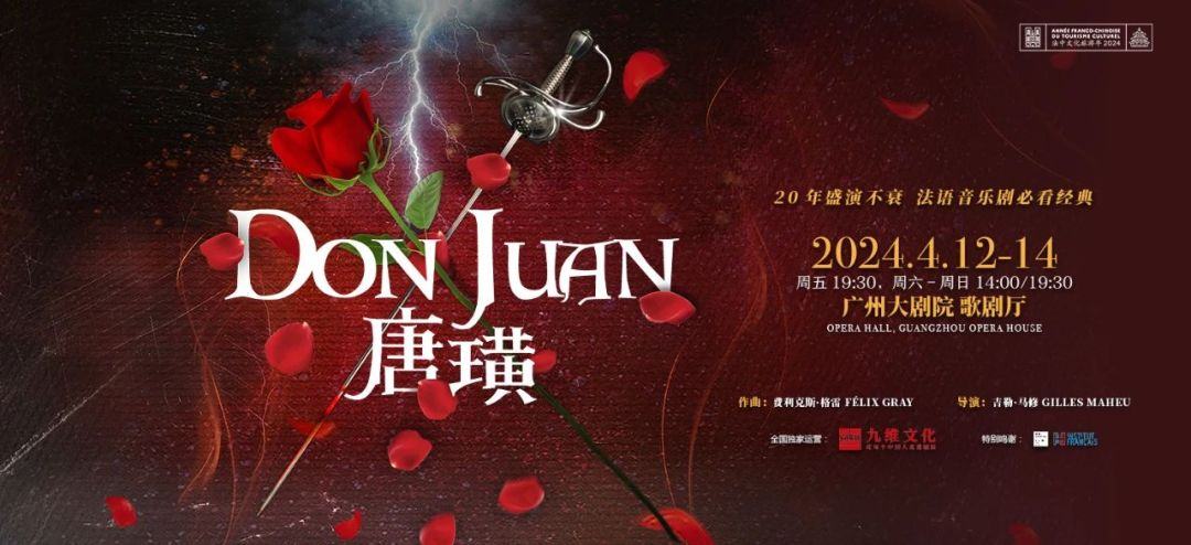 4月12日—14日,法语音乐剧三巨头之一《唐璜》将在首演20周年之际首次来到广州,在广州大剧院连演5场。