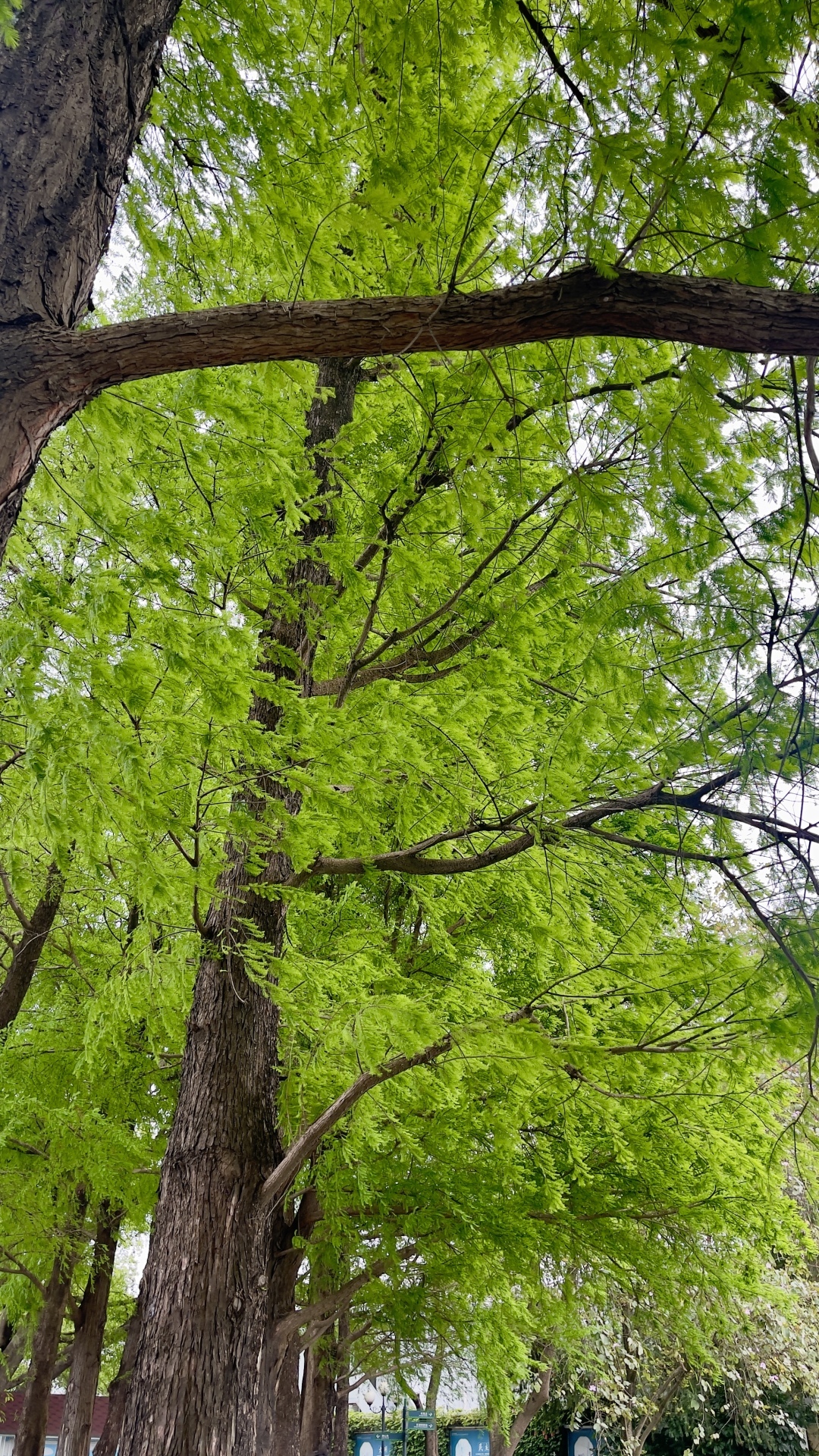 落羽杉属植物有落羽杉、池杉和墨西哥落羽杉三种,我国普遍栽培的是落羽杉和池杉。在广州,无论是华南国家植物园、麓湖公园,还是流花湖公园、珠江公园、白云湖公园,可以说只要有“水”的地方就能遇见落羽杉。虽然说春天并非落羽杉的“高光时刻”,但与其他树木相比,新芽冒尖儿的落羽杉枝叶以轻盈取胜。