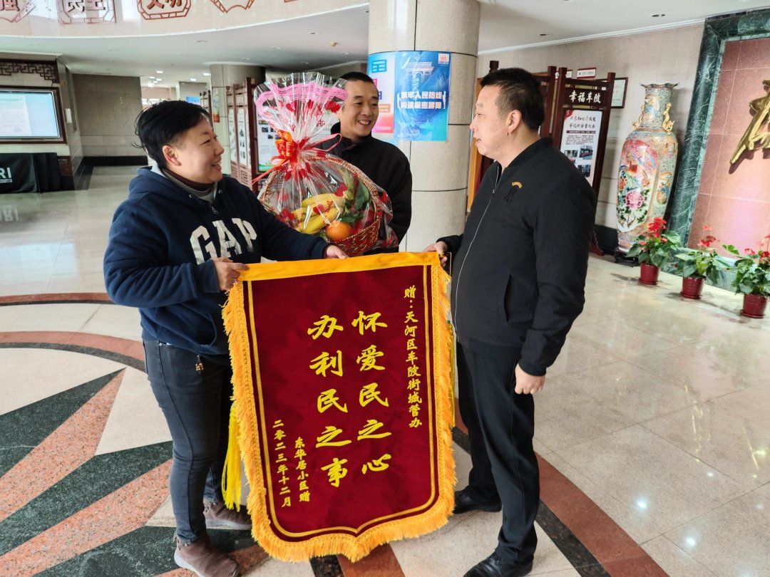 近日,广州市天河区车陂街东华居小区住户迎来了大喜事——小区供水改造工程圆满完成并投入使用。为感谢街道全力协调改善东华居老旧小区供水改造工程成功投入使用,东华居物业、居民代表送锦旗到车陂街表示感谢。