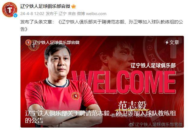 4月8日,辽宁铁人足球俱乐部官微发布《辽宁铁人俱乐部关于聘请范志毅、孙卫等加入球队教练组的公告》。全文如下: