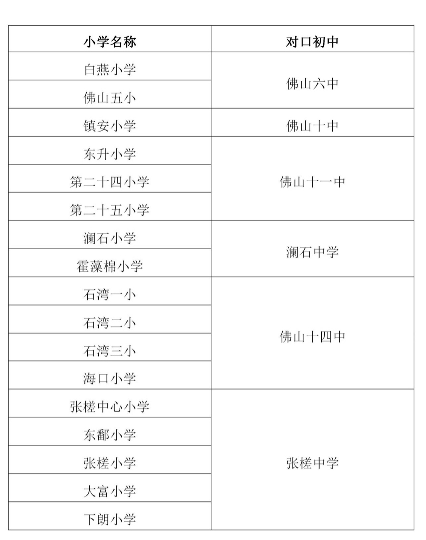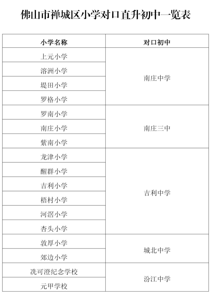 禅城区实行部分小学应届毕业生对口直升公办初中工作。