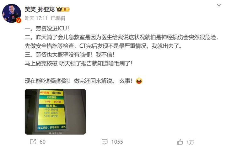 4月7日,他更新身体状况称:“大概率没有脑梗!我不信!”