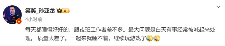 也有不少粉丝透露,因为游戏主播的工作,孙亚龙熬夜、抽烟是常态: