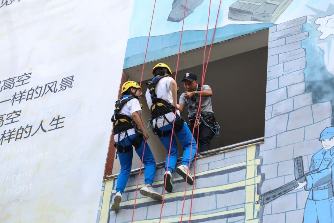 广大附中国防教育里的绳攀课程,有助于锻炼学生意志。