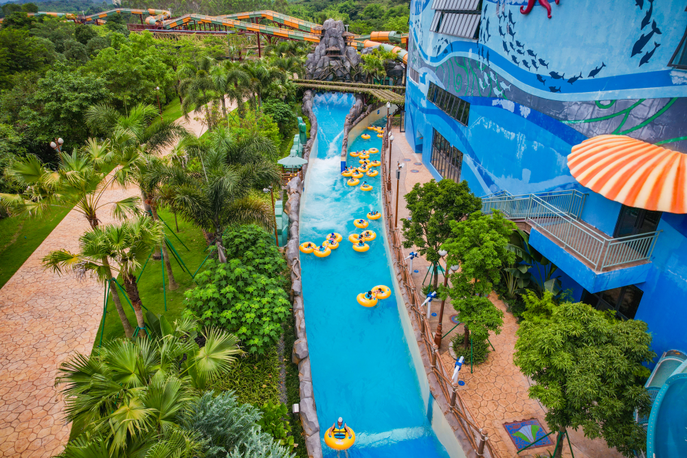 游客在园区内无限畅玩多个主题分区。其中,水上过山车全长达570米,连接神秘海岛和古海森林两大区,适合亲子家庭共同体验。来园的大小朋友,绝不能错过这场新鲜又刺激的“冒险之旅”!园区内的无边际泳池、椰林白沙滩、空中廊桥等均可以“随手出大片”。它还是休闲度假的好去处,在这里,你可以体验从五楼至一楼的奇妙漂流,或是来场舒适的SPA;玩累了,还可以享受一场丰富的美食盛宴,东南亚美食、西餐、中餐茶点,各种美食任你选择。