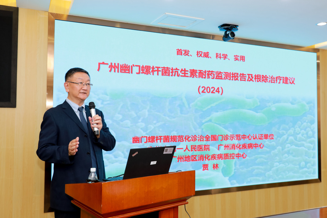 据了解,1982年,中国工程院外籍院士马歇尔Marshall和Warren从胃黏膜中分离出幽门螺杆菌并于2005年获得诺贝尔生理学和医学奖。广州市第一人民医院消化内科潘百思教授、李瑜元教授从上个世纪八、九十年代起,就开始了对幽门螺杆菌的研究,李瑜元教授获批首个国家新技术推广项目“HP的规范化诊治”,始终走在前列。贾林教授是《中国Hp根除与胃癌防控专家共识(2019)》和《体检人群Hp血清学检测专家共识(2022)》制订专家组成员。2022年9月,经国家消化病临床医学研究中心(上海)李兆申院士批准,贾林教授牵头,广州市第一人民医院成为首批幽门螺杆菌规范化诊治全国门诊示范中心,率先在广东医院常规开展幽门螺杆菌抗生素药敏检测-精准根除新技术,指导广州地区基层医院的幽门螺杆菌规范化诊治。