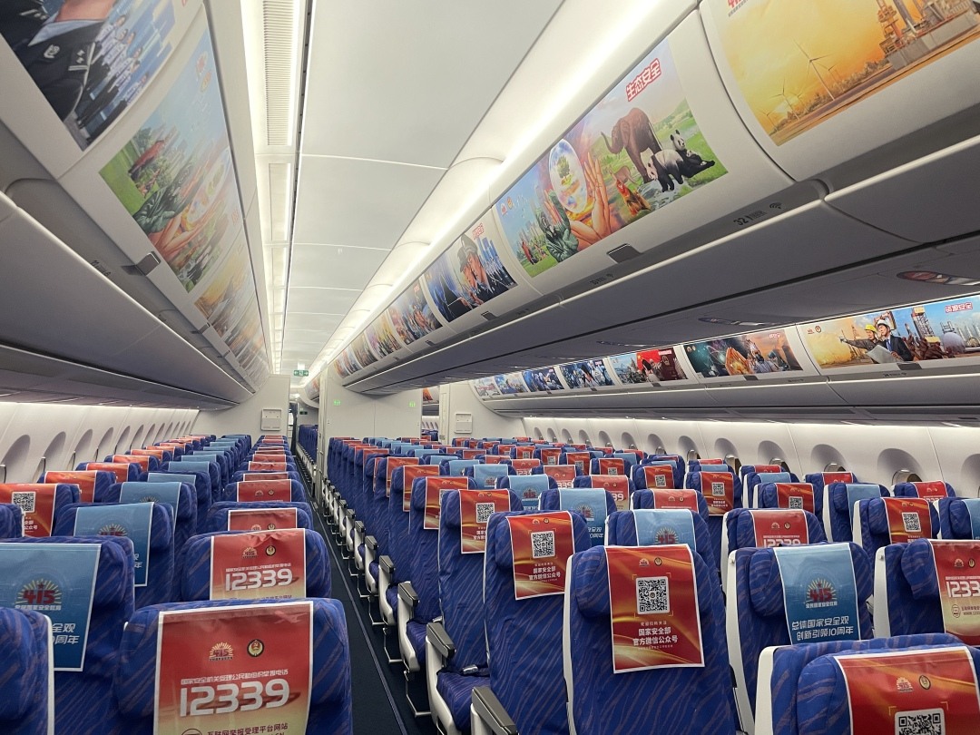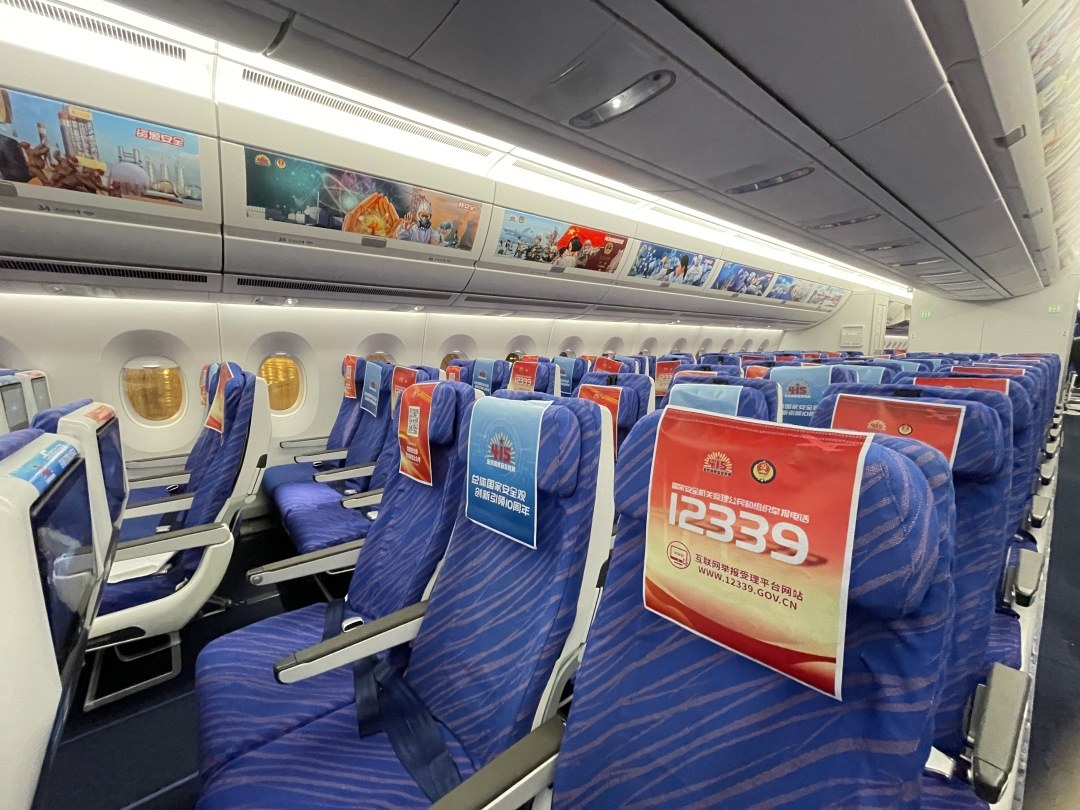 当天上午,“国安号”主题航班正式起航。当旅客登上飞机,客舱中张贴的宣传海报以及座椅套、小桌板、行李架上设置的国家安全教育内容便映入眼帘,吸引许多人围观点评。另外,航班机组还提供《南方航空》杂志供旅客翻看,供大家了解反间防谍知识,整个环境布置为旅客精心打造出国家安全“空中课堂”。