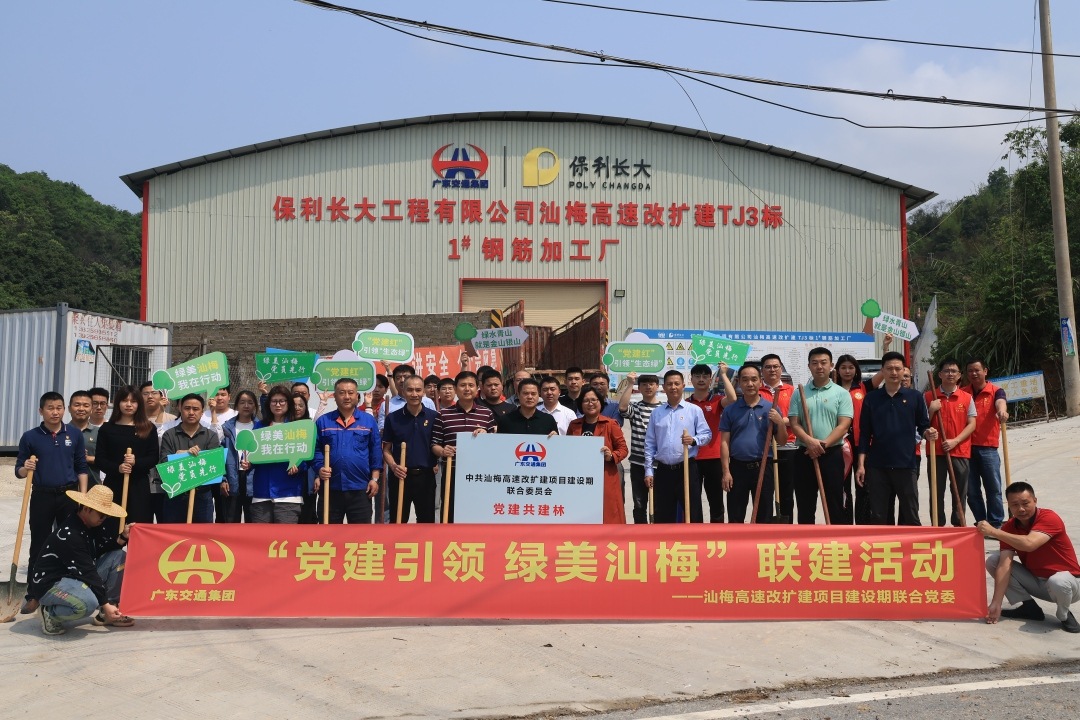 汕梅高速改扩建项目与北斗镇政府在盘园村打造党建共建林。