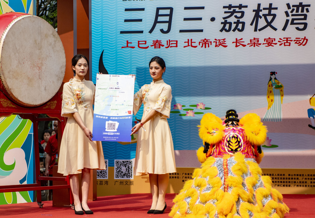 在本次活动启动仪式上,荔湾区联动阿里巴巴公司,正式发布了荔湾旅游1亿元高德打车优惠大礼包,立减满减折扣各种福利应有尽有,其中“三月三”活动期间(4月11日至13日)打车到西关永庆坊旅游区,更可享受6.5折优惠,让市民游客更好更便捷地到荔湾体验这场民俗文化盛宴。