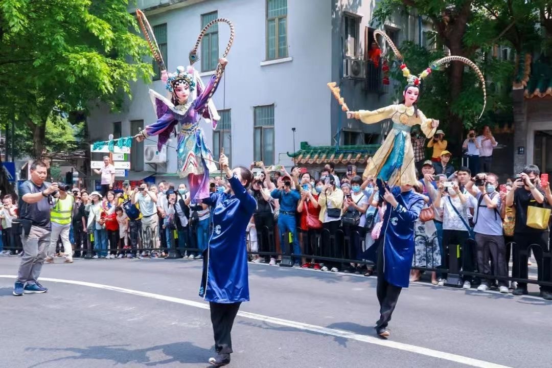 今年的巡游方阵可圈可点:有突显西关本地特色的粤剧群英队伍、优雅美丽的西关小姐再现西关,以及代表广州、荔湾在地文化的泮塘五秀、麒麟舞、岭南木偶戏等,可谓“八仙过海各显神通”,让人们在巡游中遍览西关情。不仅如此,巡游队伍除了体现广佛一家亲的禅城武术队伍外,更有贵州惠水、梅州梅江、广西歌王等巡游队伍前来助阵,共同在荔枝湾畔为观众们献上特色“绝活”。