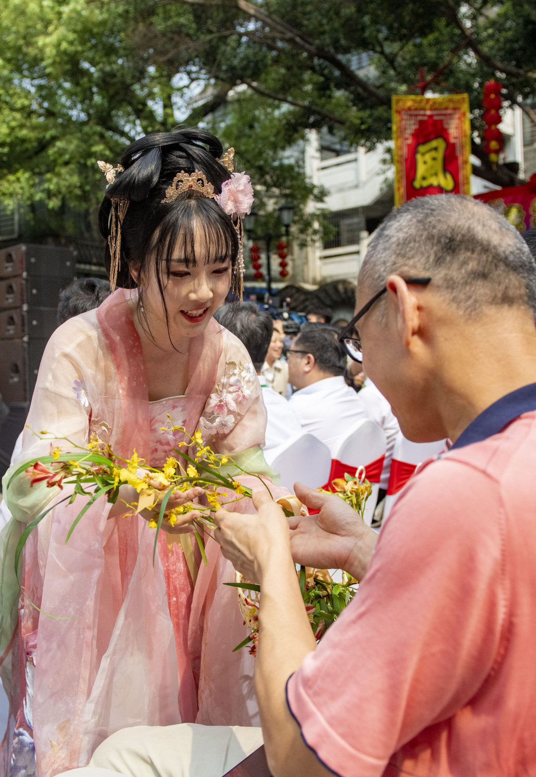三月三日也是上巳节。在古代民间,这一天,有祓除畔浴、祭祀宴饮、曲水流觞等雅好。老传统新玩法是近年来荔湾举办民俗活动的宗旨,不断将新鲜事物、文化时尚与传统文化相融合,让民俗活动升级为具有品牌效应的现象级城市活动。启动仪式当天,身穿汉服等具有中国传统元素服饰的舞者,结伴在西关永庆坊旅游区文旅线路景点游春逛园踏青,向来往行人赠送鲜花香草,呈现古时祓禊场景。