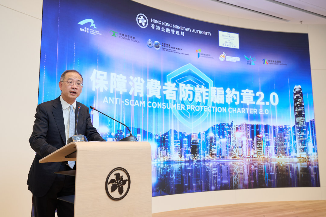香港金融管理局總裁余偉文宣佈與香港銀行公會合作推出《保障消費者防詐騙約章 2.0》