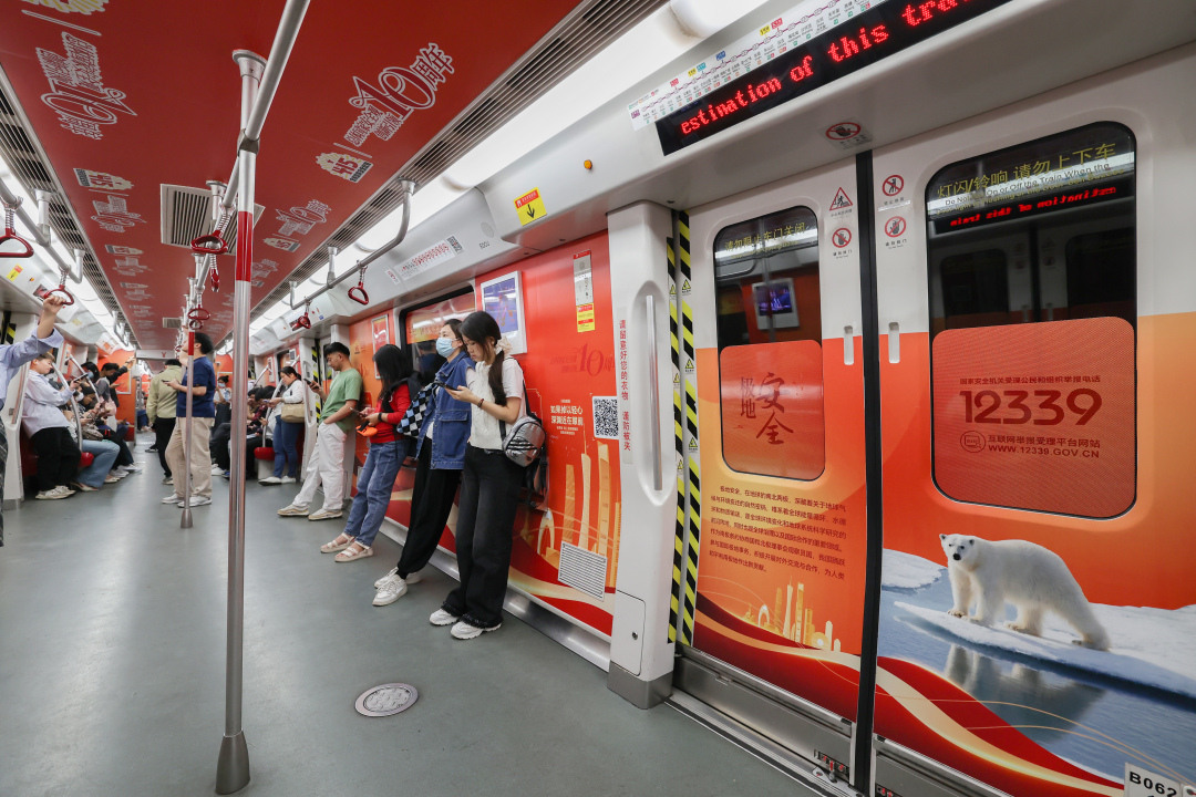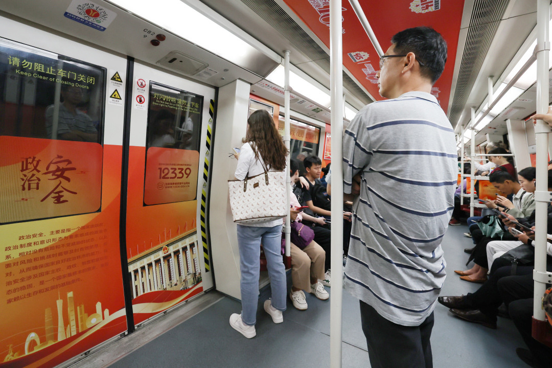 4月起,共有6列“国安号”地铁专列在1、2、3、6、7、8等6条地铁线路上投入运营,覆盖广州市东西南北四个方向,横穿城市中心区域,就像穿梭在羊城核心城区的“移动宣传大使”。同时,运用多达数万个地铁电视、地铁灯箱等多元载体,同步刊播国家安全宣传内容与国家安全公益广告。