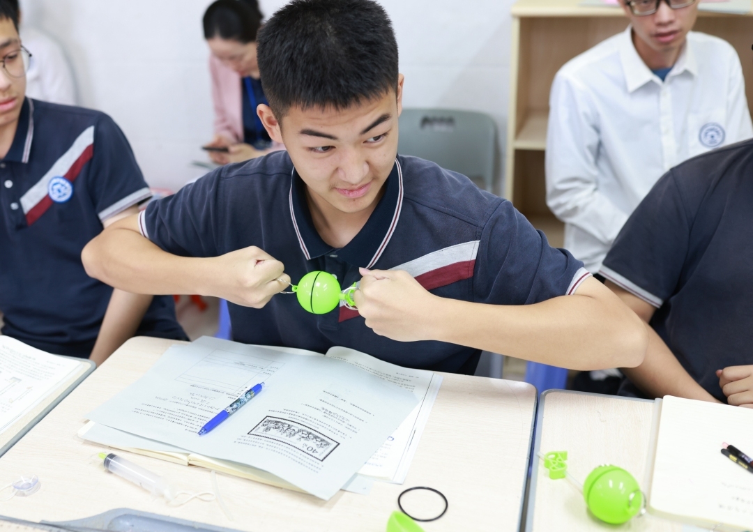 学校初中部在各学科推广“读思达”教学法,重点关注学生知识的深化和分析能力的提升。物理实验课上,学生们在老师的指导下进行实验操作,通过观察和分析实验结果,加深对科学原理的理解;英语课上,老师结合新课标要求,注重培养学生的语言能力、文化意识、思维品质和学习能力等素养。