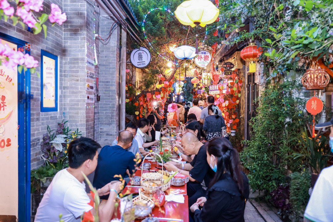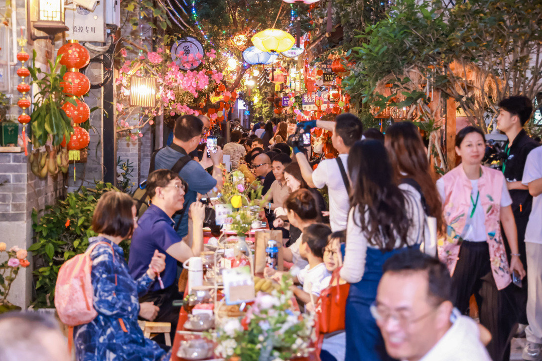 近百米的长桌宴,吃下去的是一份乡愁。近年来,荔湾以打造世界级旅游目的地为目标,深入推动文旅融合高质量发展,不断擦亮“岭南文化看荔湾”的靓丽名片,塑造“最广州”“最岭南”“国际范”的旅游城市形象,成功创建永庆坊国家级旅游休闲街区、省级全域旅游示范区,联合佛山市禅城区、南海区成功申报国家级文化产业和旅游产业融合发展示范区建设单位。如今的泮塘古村是国家级旅游休闲街区、广州市“城市客厅”代表性考察点,承载了村民深厚的情谊和乡俗文化,成为连接过去与现在、传统与现代的桥梁。
