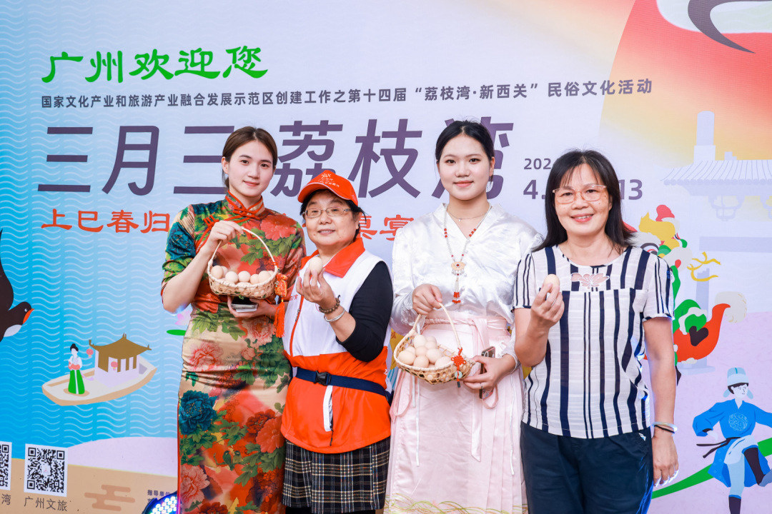 农历三月三,摘荠菜,煮鸡蛋。为原汁原味呈现岭南民俗风情,席前,在泮塘五约亭设置了荠菜煮鸡蛋的场景,并向市民游客派发寓意祝寿祝福的333只鸡蛋,现场气氛热闹非凡。