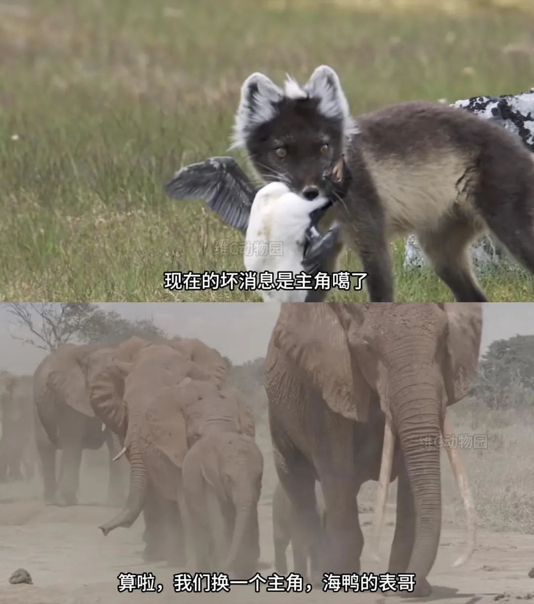厚嘴海鸭飞跃山崖、成功落地后,维C激动地表示“它们将以无畏的勇气披荆斩棘”,但很遗憾,接下来并不是海鸭们如何与天敌斗智斗勇的故事,因为博主突然想换一个主角。他开始讲海鸭的“表哥”非洲象,但这也不用记,因为接下来的内容跟他们一点关系都没有。