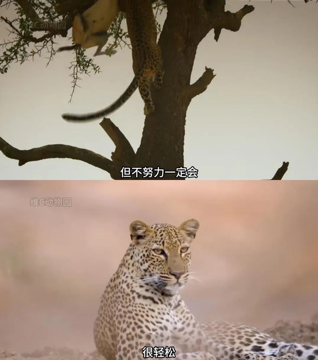 @维C动物园 在讲花豹猎捕屡屡失败时总结道,“豹生总是如此,难免经历各种挫折。但那些杀不死我的,还不如直接杀死我。真是三百六十行,行行干破防”,直戳打工人的泪点。